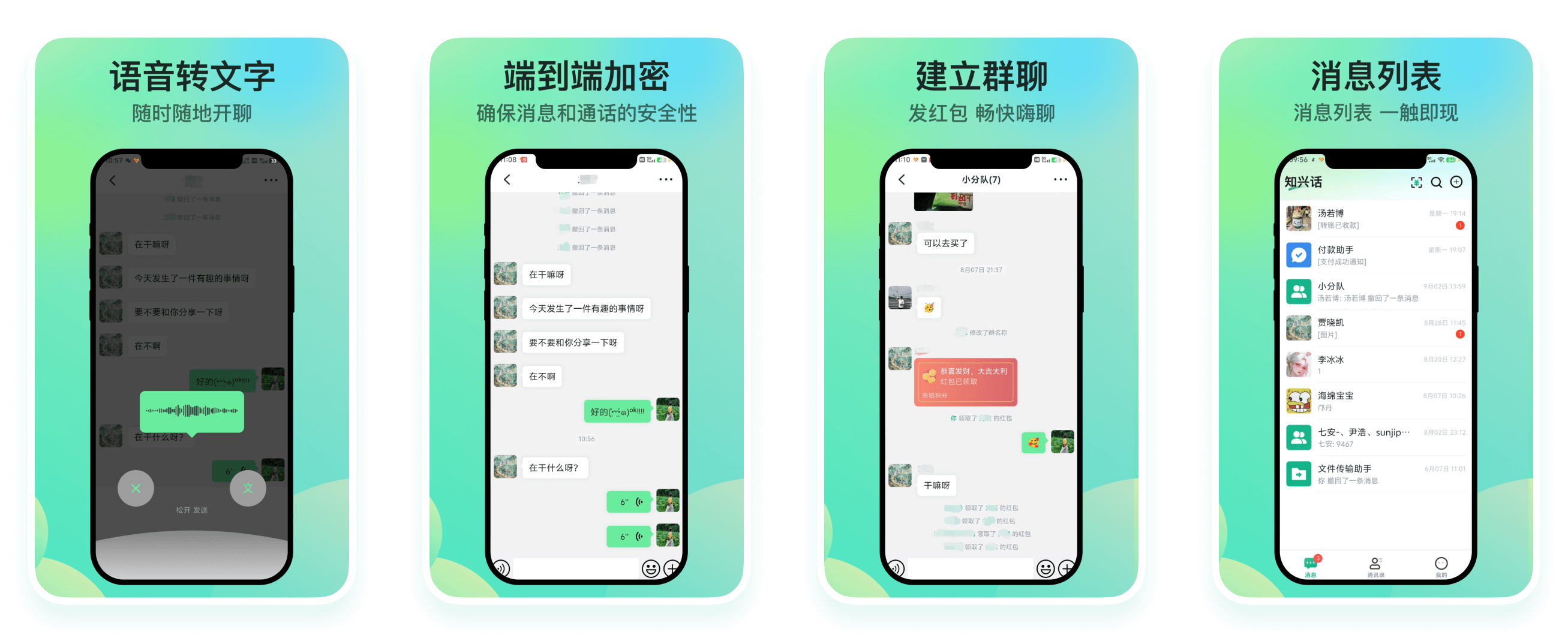 产品“知兴话”,是一款集聊天、群聊、安全支付等多功能于一体的私密通讯应用程序